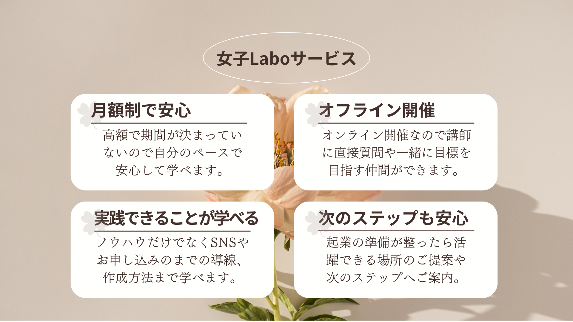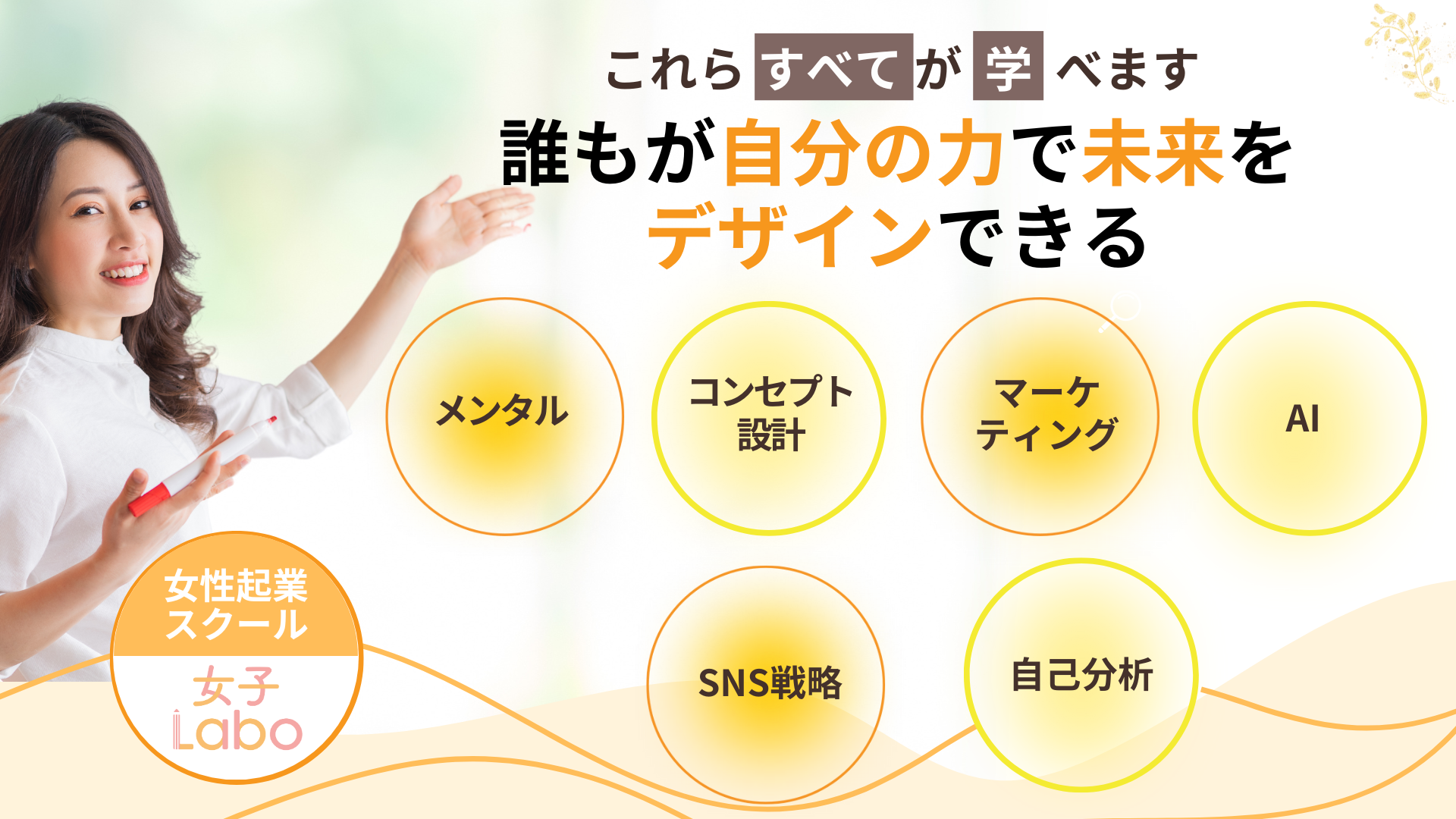 そう信じて、これまでの仕事を軸に、心の整理、人間関係、健康にお金と、女性が幸せに生きるために必要な様々なことを経験し、延べ10,000人の方々にお伝えしてきました。そしてその集大成として、女性の生き方をクリエイトする定額制の「起業スクール」を作りたいと考えるようになり「女子Labo起業スクール」を立ち上げました。